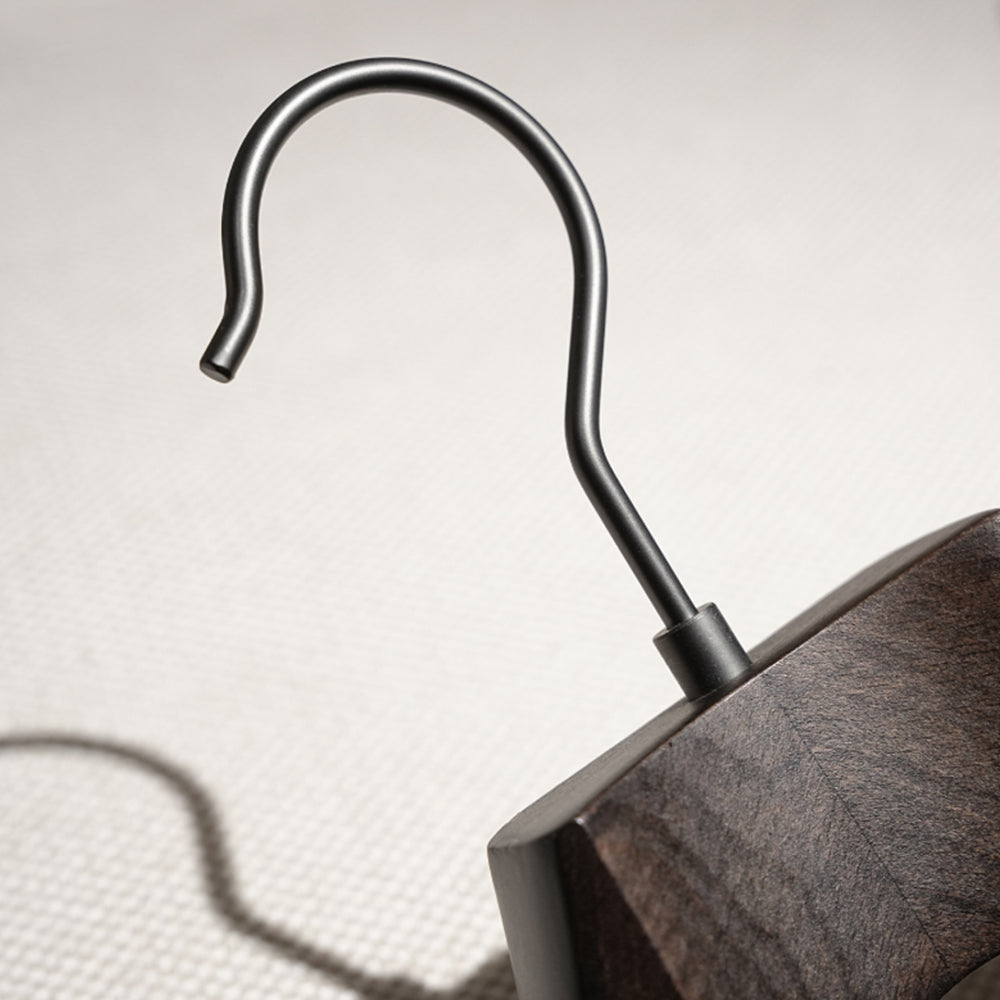 Natural Wood Construction & Smooth Finish Crafted from premium natural wood with a sophisticated black finish, each wooden coat hanger showcases exceptional durability and vintage charm. The smooth, splinter-free surface protects delicate fabrics while the sturdy construction supports heavy winter coats and formal suits without bending or breaking.