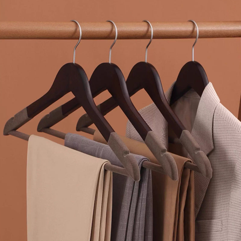 Premium Flocked Wooden Hangers - Non-Slip for Boutique & Home Closet Storage