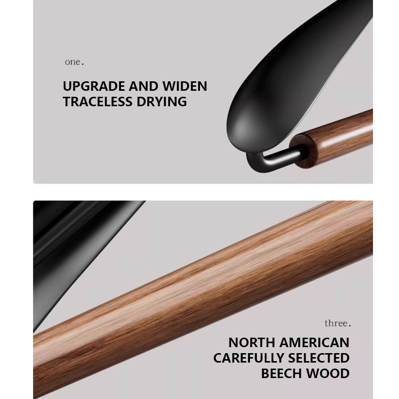 Crafted from high-mountain beech wood with reinforced black metal hooks. The hand-polished wood bar paired with thickened iron construction creates a lifetime investment for your closet organization.